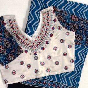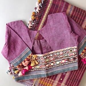 Bhujodi kala cotton saree with ready blouse with kutch embroidery