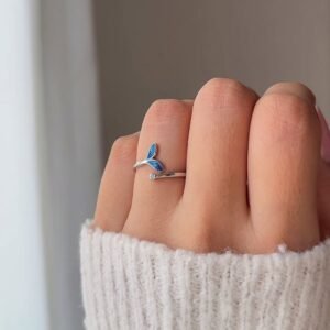 Blue Enamel Mermaid Tail Necklace and Ring Set