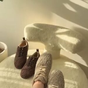 Cozy Knit Lace-Up Indoor Shoes – Soft & Warm Comfort
