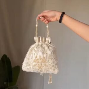 Elegant Pearl Finish Clutch with Gold Chain Strap