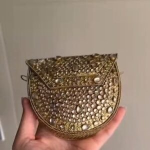 Gold Beaded Phone Sling Pouch with Knotted Net Design