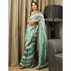 Double Shaded Green Color Digital Printed Saree