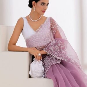beautiful saree in soft organza made it with embroidery saree with blouse