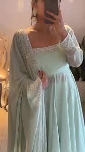 To complete the ensemble, the set includes a matching dupatta, which adds an extra layer of elegance and sophistication. The dupatta is typically made of the same faux georgette fabric, creating a cohesive look. It may be adorned with intricate embroidery, lace, or sequins, elevating the overall charm of the outfit.