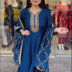 Peacock Blue And Black Zariwork Readymade Salwar Suit