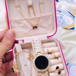 Gold Tone Black Stone Jewelry Watch Gift Set for Women