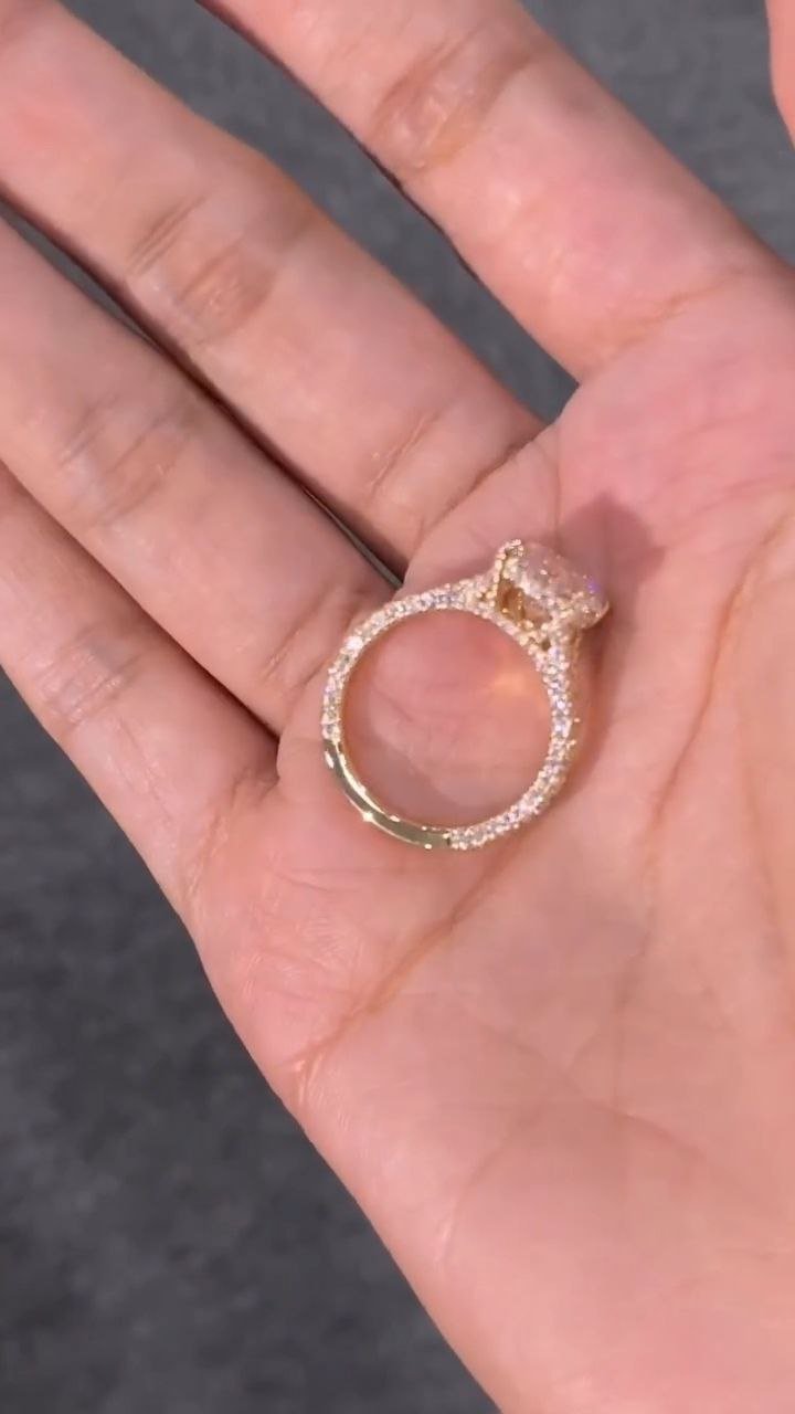 This exquisite gold ring features a delicate pavé-set band that delivers continuous sparkle and a refined silhouette. The halo-style head is designed to highlight a center stone, enhancing brilliance and visual impact, while the slender band adds a touch of timeless elegance. Perfect for engagements or special occasions, this ring setting blends classic design with modern sophistication, making it a beautiful choice for those who appreciate fine craftsmanship and understated luxury.