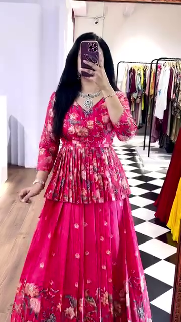 🌸 Floral printed lehenga with rich pleats for volume