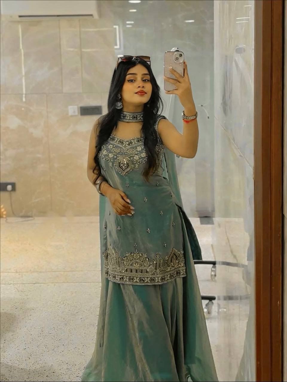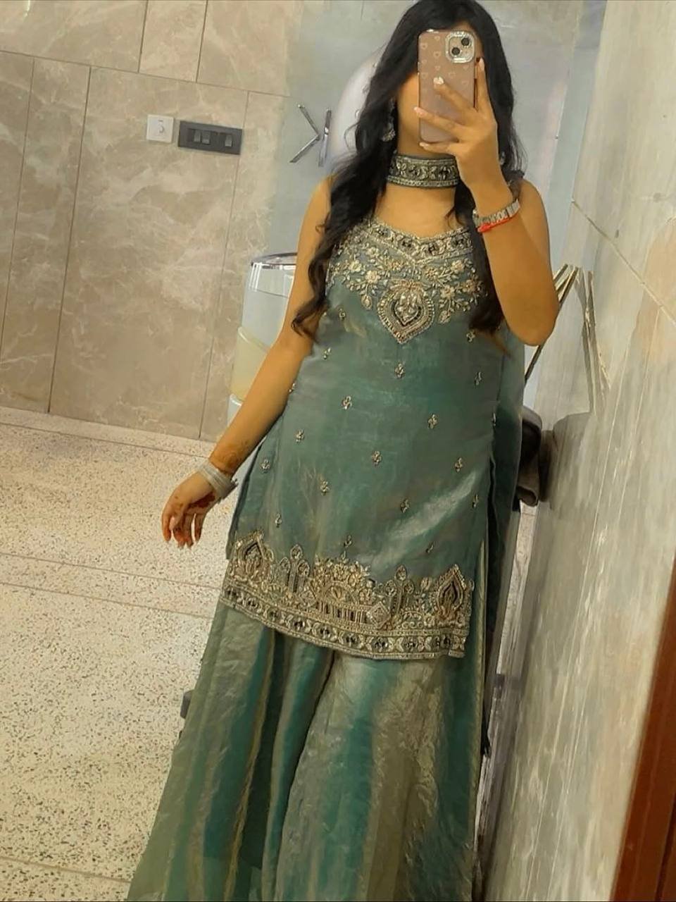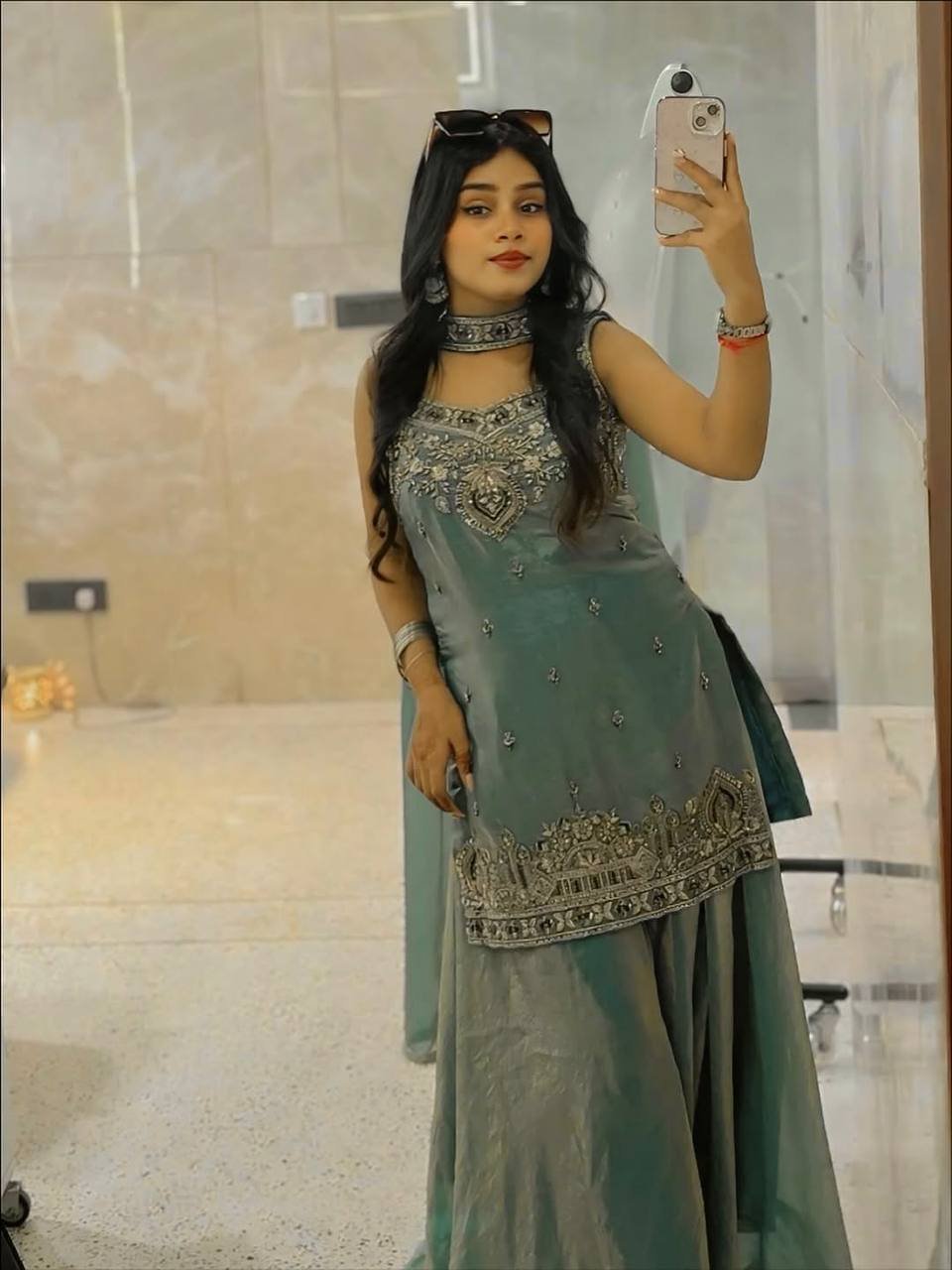 Paired with matching bottoms and a complementing dupatta, this ensemble creates a balanced and graceful look suitable for festive celebrations, family functions, and evening events. The subtle embellishments and elegant color tone make it a versatile piece that effortlessly blends traditional artistry with contemporary style.