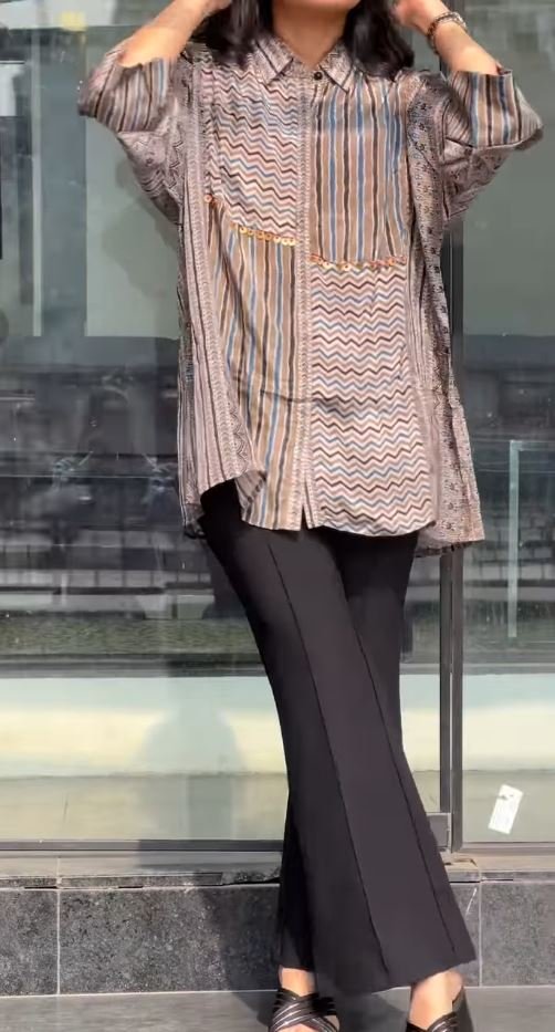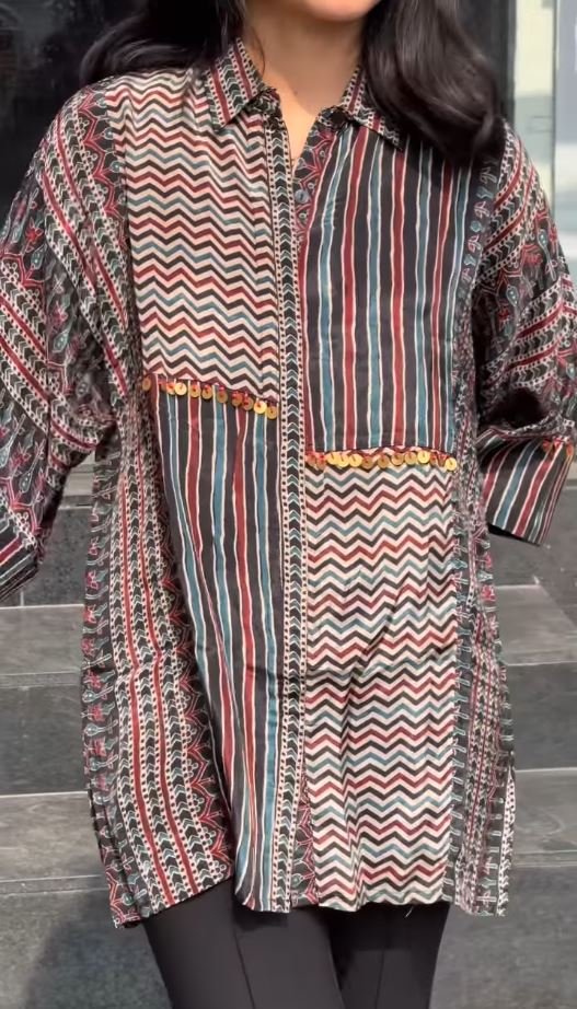 Experience the perfect fusion of heritage craft and contemporary style with this Boho Grid Ajrakh Print Shirt.