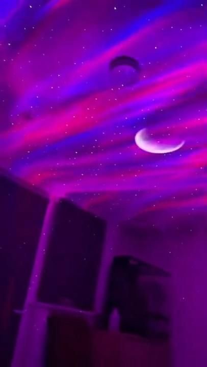 A decorative galaxy projector that transforms any room into a relaxing night sky environment. It projects colorful nebula-style lighting and a moon effect across walls and ceilings, creating a calming atmosphere for bedrooms, relaxation spaces, or ambient lighting setups.