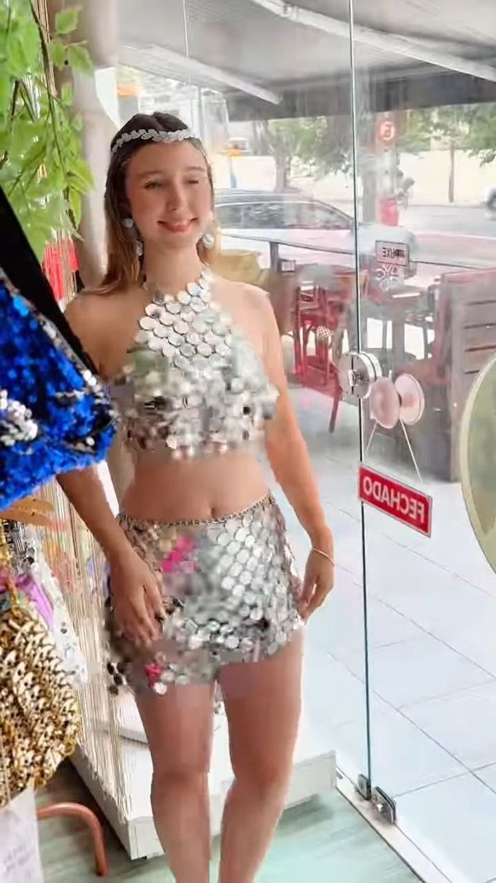 The reflective disc detailing catches the light from every angle, making it perfect for parties, birthdays, festivals, night events, and special celebrations. Designed for confident styling, this set pairs effortlessly with heels or statement accessories for a glamorous, high-impact finish