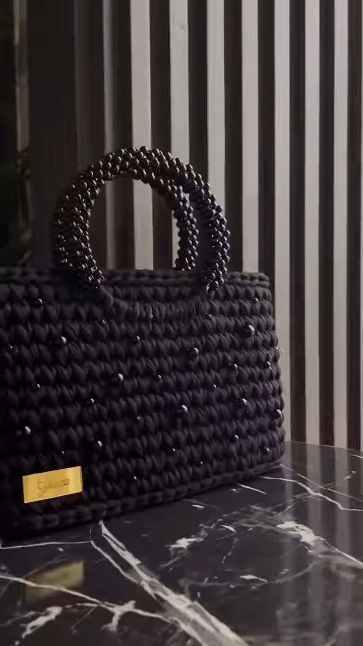This handwoven black tote bag blends craftsmanship with modern sophistication. Designed with a richly textured weave and subtle bead embellishments, it offers a refined yet versatile look. The structured shape provides ample space for daily essentials, while the sturdy top handles ensure comfortable carrying throughout the day. Its timeless black tone makes it easy to style with both casual and formal outfits, making it a reliable choice for work, outings, or evening occasions. A perfect balance of functionality and understated elegance for everyday use.