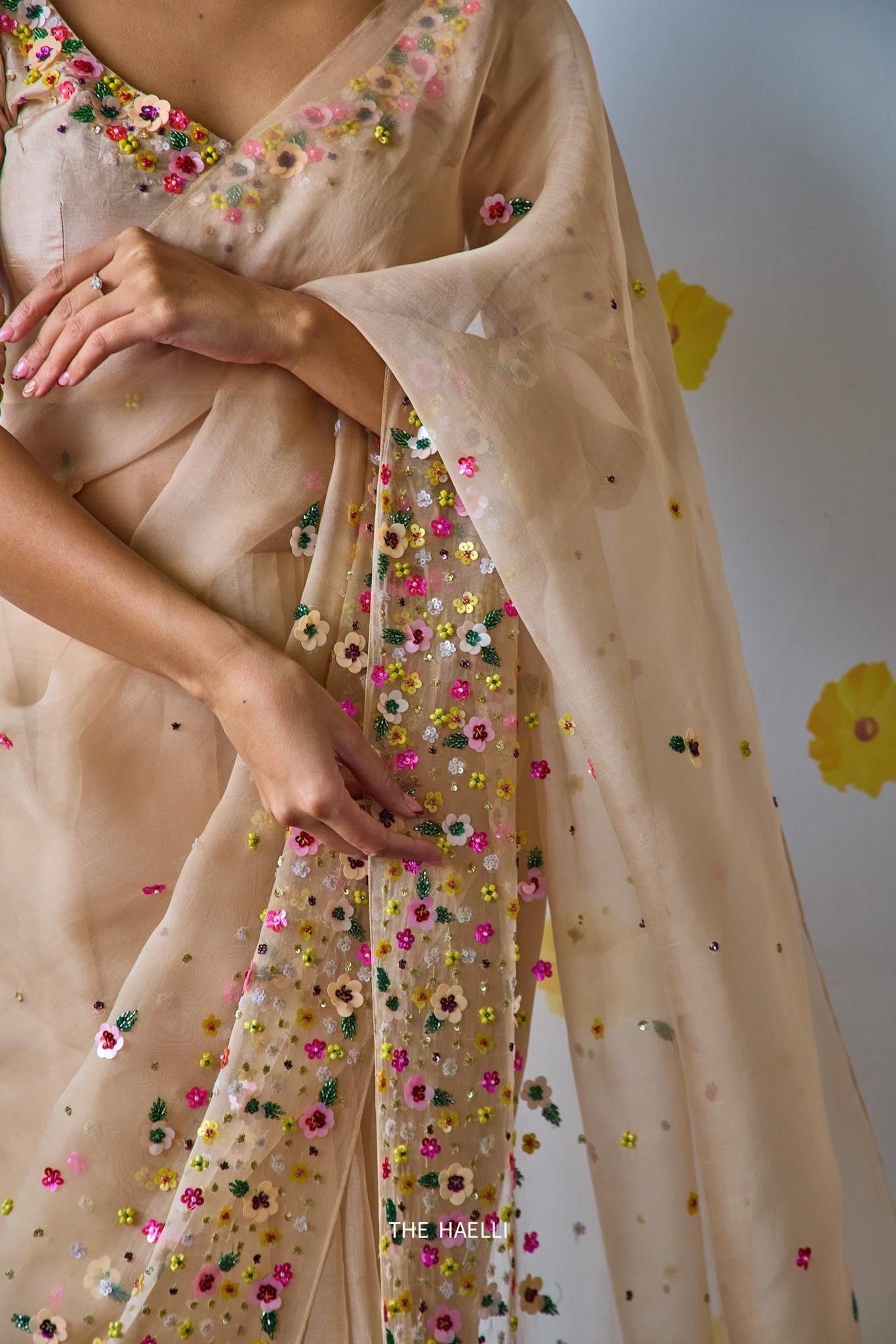 NOTE: Slight difference in the color is possible due to photography lights and different screen resolution of mobile or laptop screens. Slight irregularities in organza fabric like weaving or white marks, if visible, indicates fabric’s purity and is not considered defected. Dimensions may vary slightly with each lot, since products are not mass produced. Fall attached, blouses stitched/unstitched or underskirts listed along with the saree may have slight color differences as compared to the saree since colors may appear dissimilar on different fabric qualities.