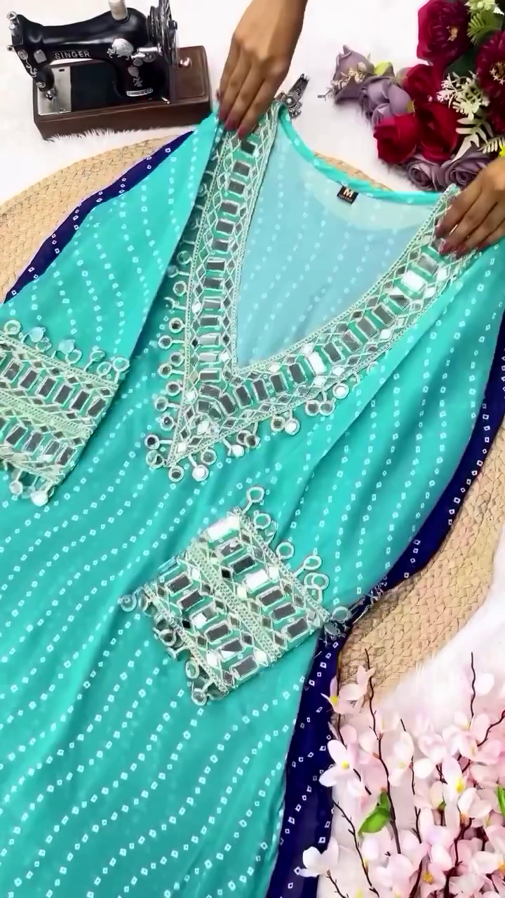 Top: Faux Georgette with Mirror Work & Bandhej Print