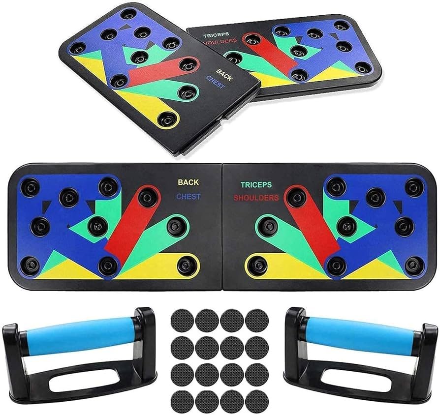 Adjustable push-up board designed to target multiple muscle groups for a full upper-body workout at home.