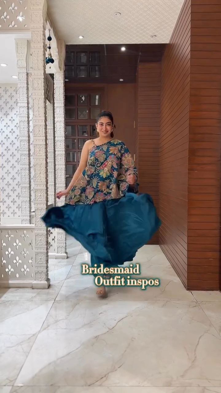 A vibrant festive co-ord set featuring an embroidered short kurti paired with flowy sharara pants, designed for modern ethnic elegance.