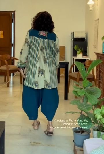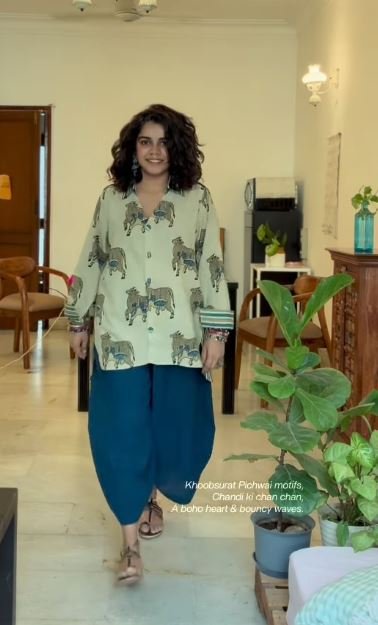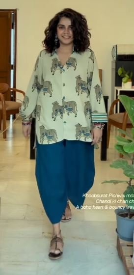 Pair it with dhoti pants or relaxed trousers to complete the bohemian-chic look.