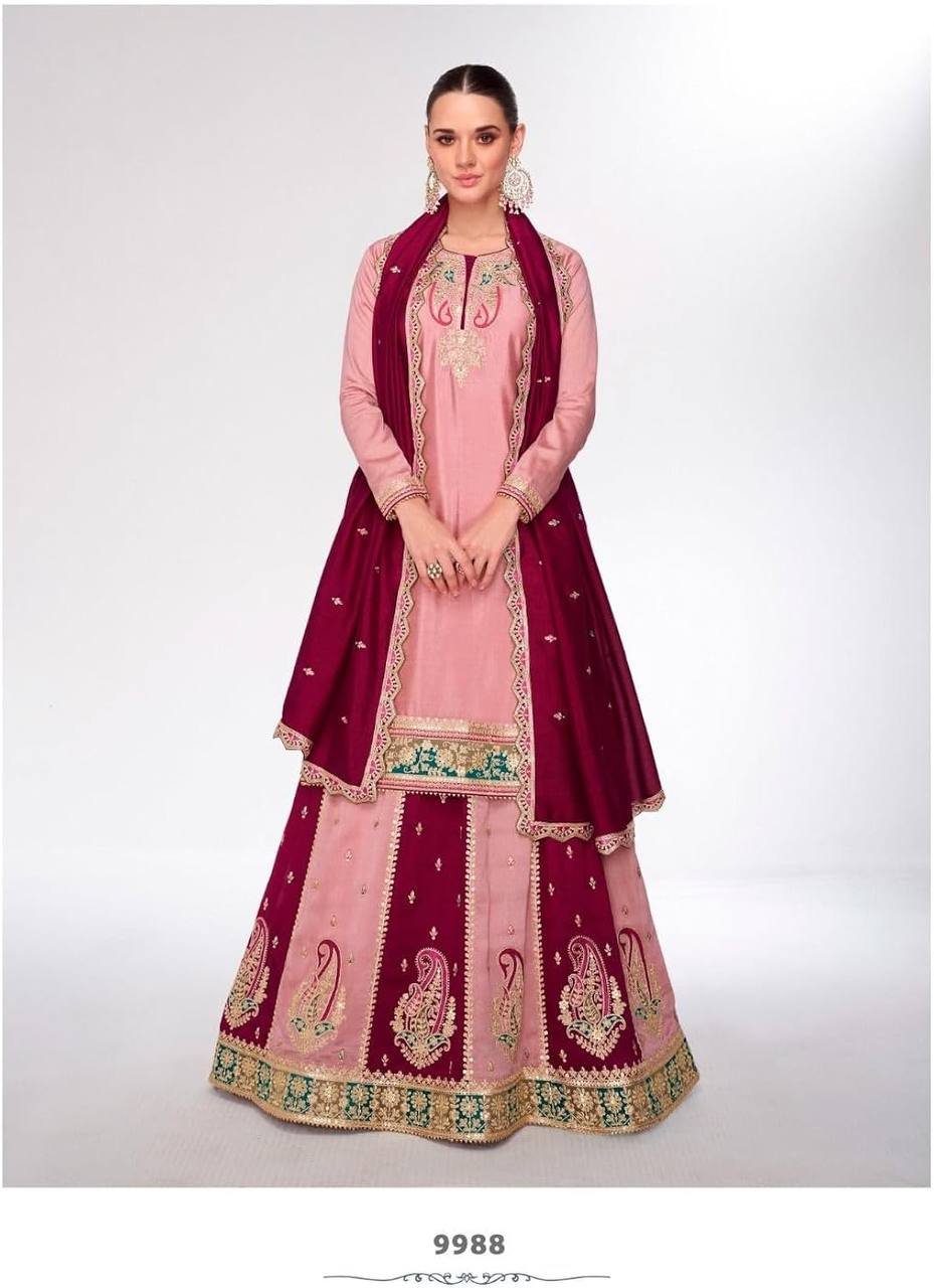 Pink Color Heavy Chinon Silk Sharara Suit