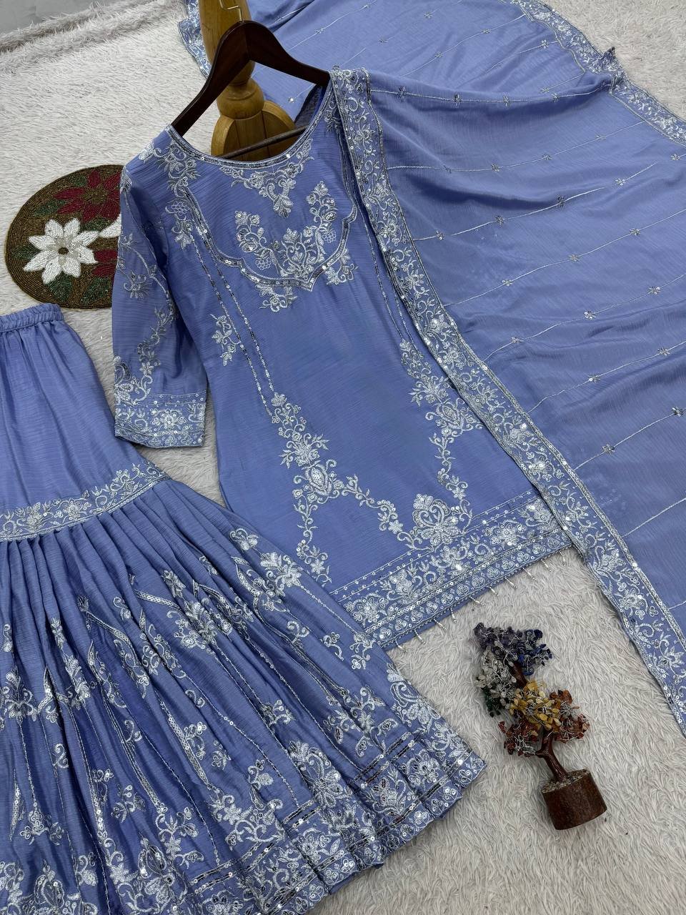 Powder Blue Chinon Sharara Suit with Sequence Work