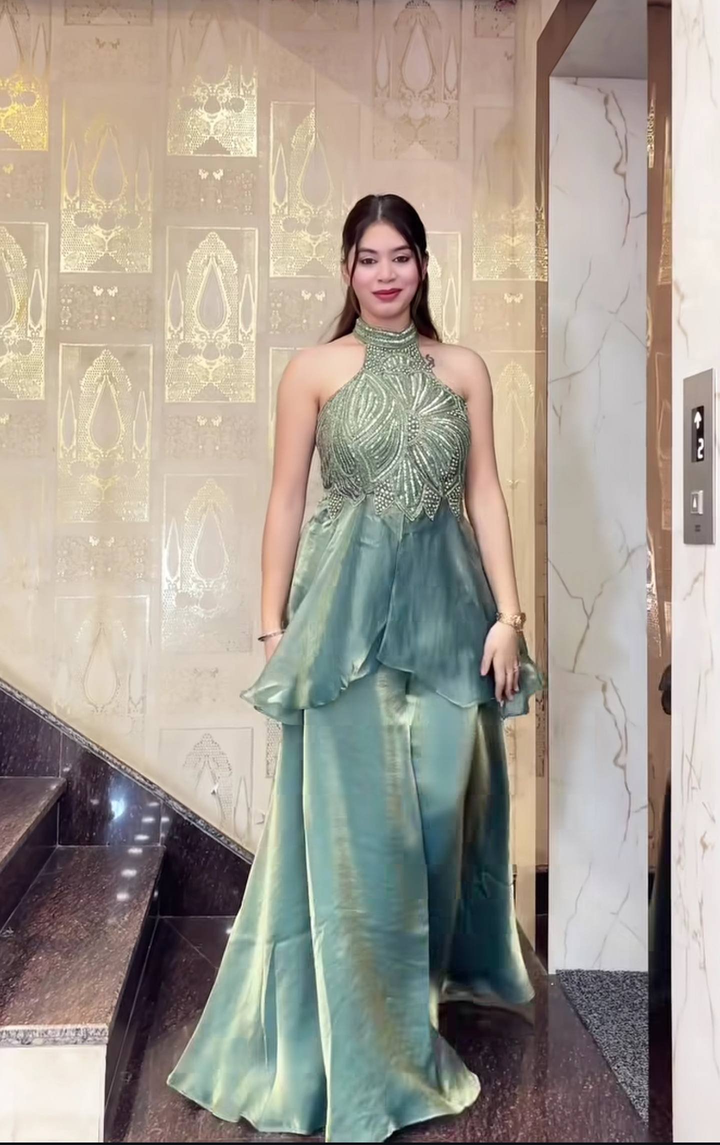 Perfect for cocktail evenings, festive gatherings, wedding events, or upscale celebrations, this ensemble offers a modern take on occasion wear while maintaining timeless sophistication. The soft sage tone enhances its elegant appeal, making it a standout choice for those who appreciate refined fashion with contemporary flair.
