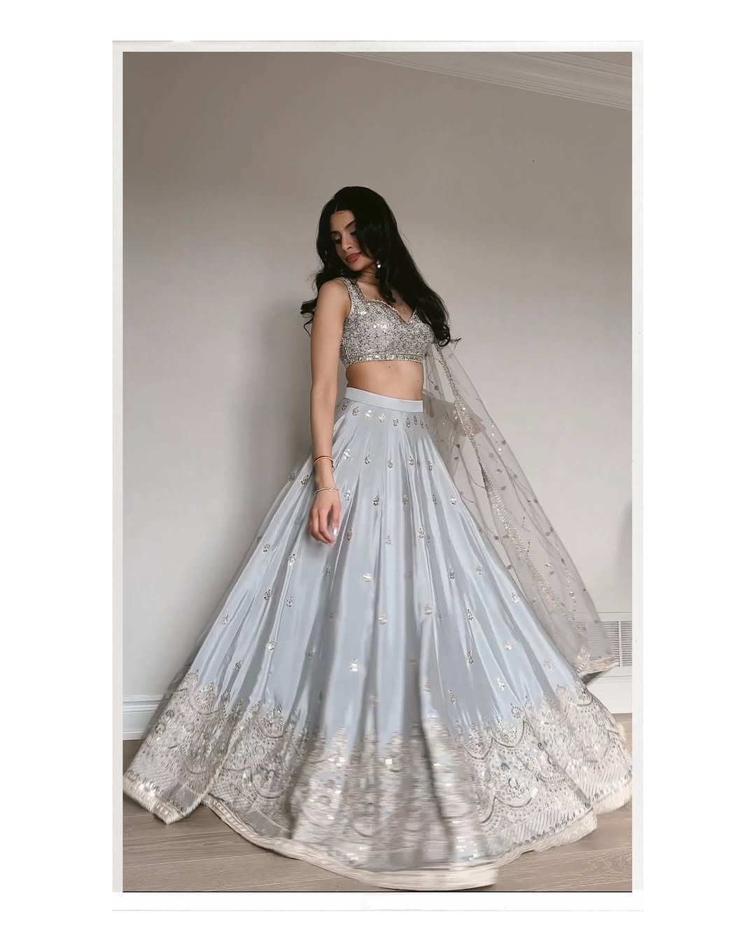 Lehenga: Georgette with Embroidered & Sequin Border