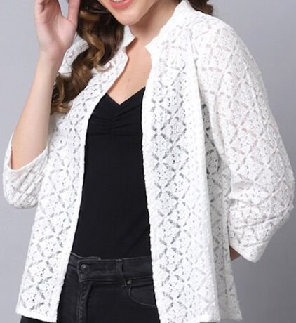 making it the perfect finishing touch for layering. Whether paired with a simple tank top and jeans for a chic casual look or draped over a sleeveless kurta for an ethnic flair, this lightweight shrug provides just the right amount of coverage.