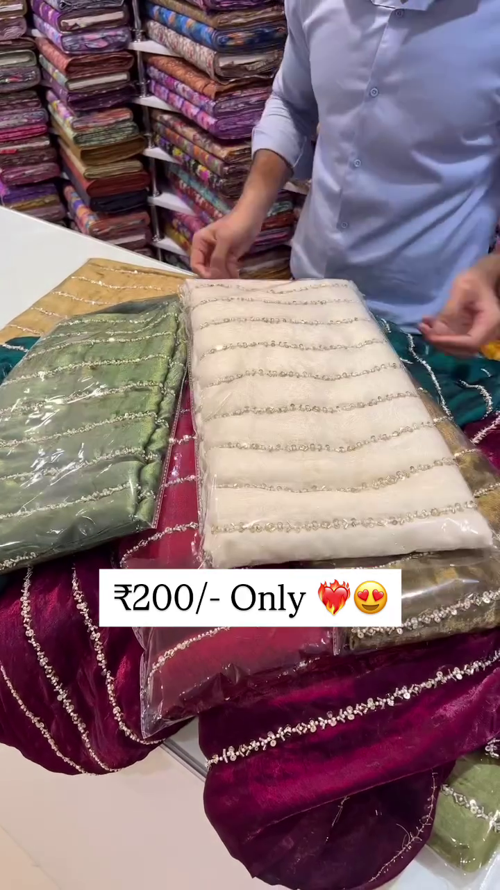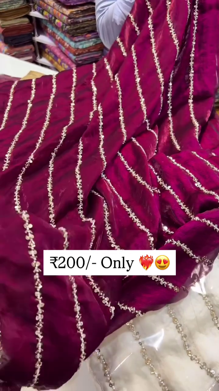 (Each dupatta features diagonal sequin embroidery in shimmering lines)