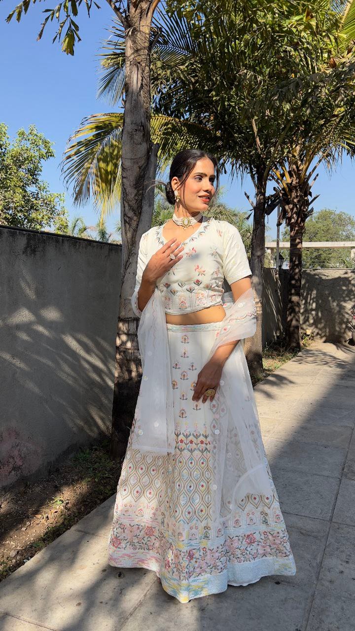 Be the first to review “White Color Thread Embroidery Work Georgette Lehenga Choli”