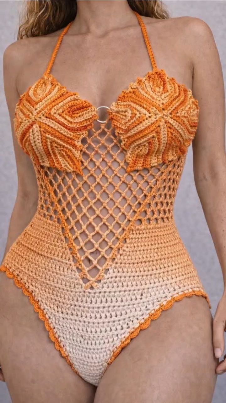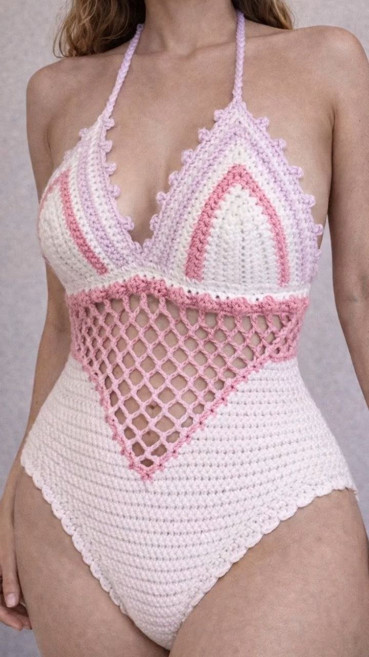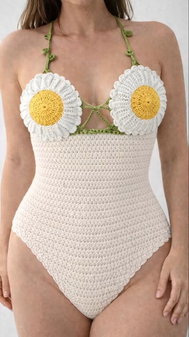 This white crochet one-piece swimsuit blends artisanal texture with modern elegance. Designed with a deep V-neckline and adjustable front tie-up, it offers a customizable fit while enhancing the natural shape. The intricate crochet cutwork at the waist adds visual interest and breathability, creating a balanced look of style and comfort. Finished with wide shoulder straps and a high-cut leg, this swimsuit is perfect for beach holidays, poolside lounging, or resort wear styling where effortless sophistication is key.