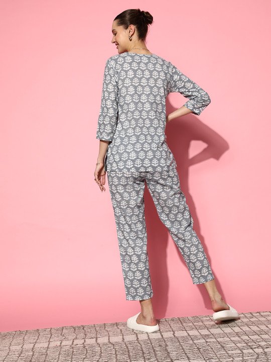 Women Grey Printed Pure Cotton Co-Ord Set