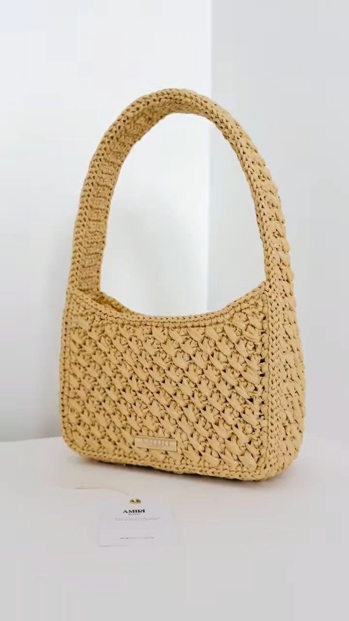 A handcrafted woven shoulder bag featuring a minimalist silhouette and natural texture, perfect for everyday and summer styling.