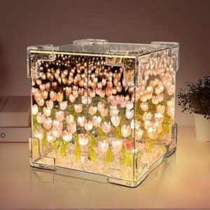 3D Tulip Crystal Cube Lamp – Decorative LED Night Light