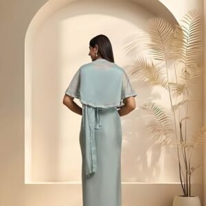 Sea Green Chinon Crape Drape Saree With Resham, Mirror, and Japanese Cut Dana